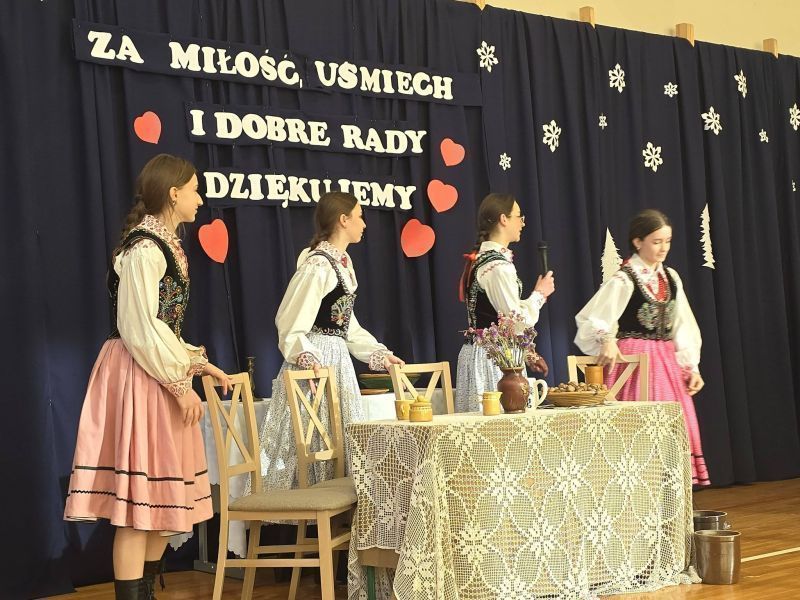 Jako pierwsza wystąpiła grupa uczniów uczęszczających na zajęcia taneczne, która powitała dziadków energicznym tańcem. Następnie młodzież z klas VII-VIII przedstawiła scenkę, w której zaprezentowała tradycyjne zwyczaje wsi lachowskiej. Po nich wystąpiły dzieci z oddziału przedszkolnego i uczniowie klas I-III. Nie zabrakło piosenek, tańców i ciepłych słów skierowanych do gości. W inscenizacji wnuczki i wnukowie obserwowali przez lornetki swoje babcie i swoich dziadków, by przekonać się czy są oni czarodziejami. Na zakończenie wszyscy uczniowie wspólnie zaśpiewali tradycyjne „Sto lat”, po czym szkolna kapela wykonała utwór „Wszystkiego dobrego”, a dzieci wręczyły własnoręcznie przygotowane upominki.