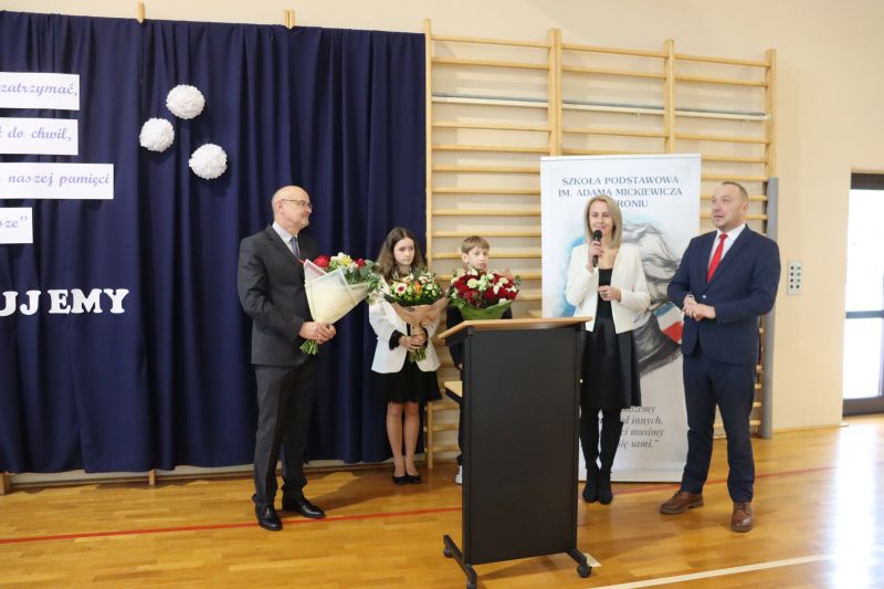 W spotkaniu uczestniczyli Wójt Gminy Pan Bogdan Łuczkowski, Dyrektor Zespołu Obsługi Edukacji Pani Joanna Juras, uczniowie, pracownicy Szkoły oraz grono pedagogiczne.