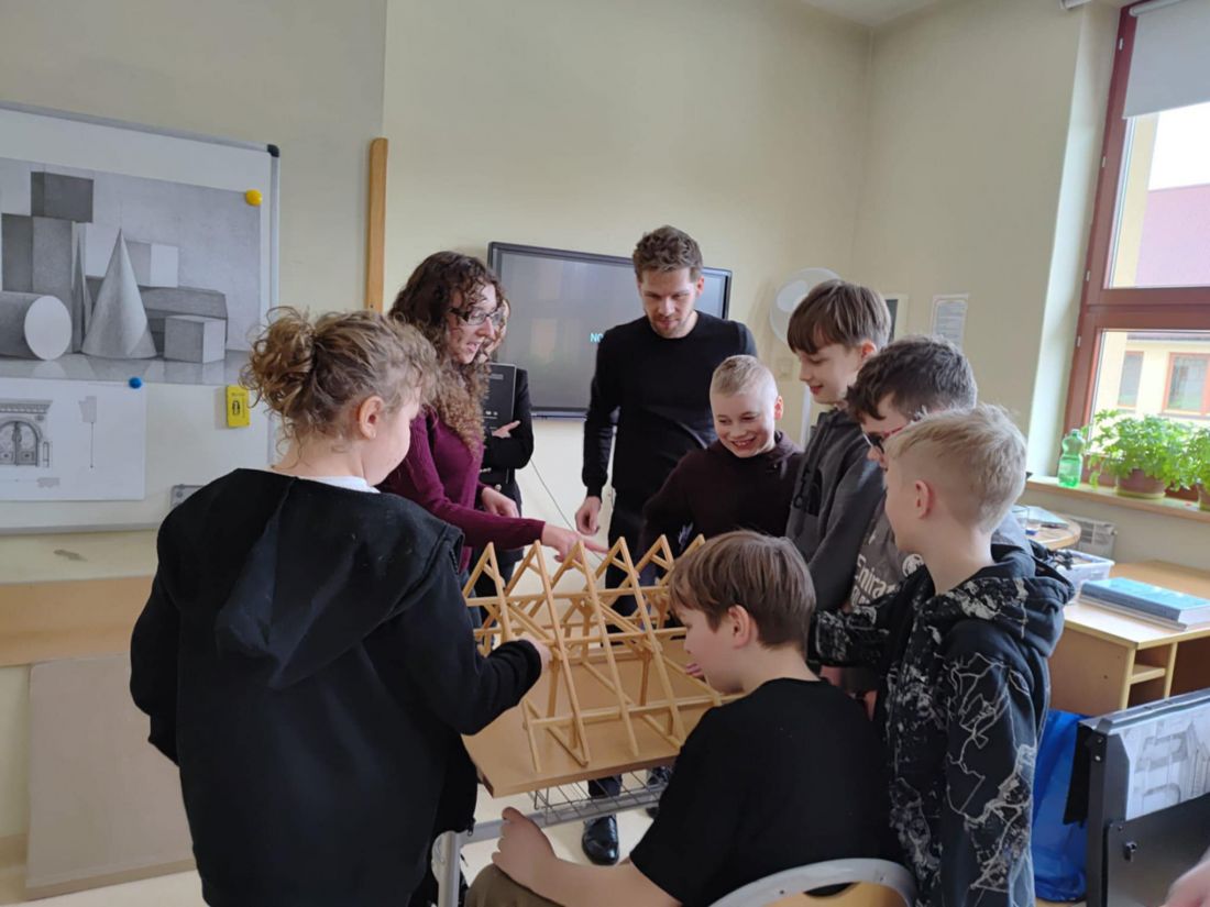 Podczas warsztatów uczniowie dowiedzieli się jak szeroką dziedziną sztuki jest architektura, łącząca sztukę, technologię i naukę. Uczniowie zobaczyli sporo rysunków technicznych, szkiców, próbek materiałów, makietę więźby dachowej a także sporo ciekawych zdjęć projektów i ich symulacji komputerowej. Architekci opowiedzieli na czym polega ich praca biurowa oraz współpraca z wieloma innym specjalistami i inżynierami, zanim ich ostateczny projekt zostanie zaakceptowany.