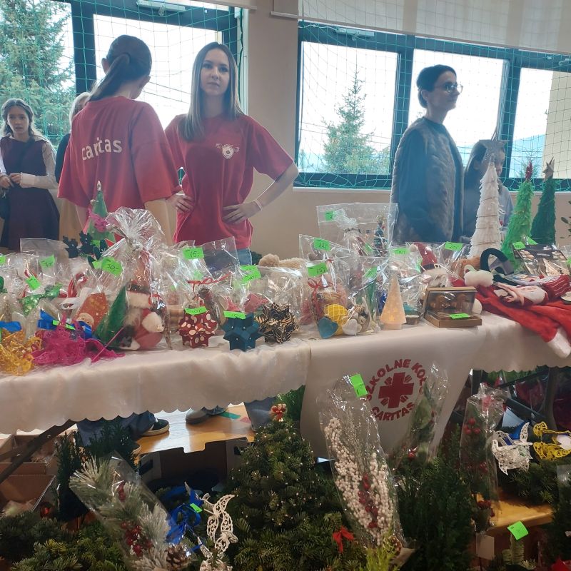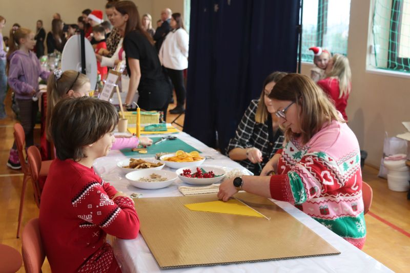 Podczas kiermaszu można było podziwiać i nabyć świąteczne ozdoby, skosztować domowych wypieków oraz wziąć udział w loterii fantowej. Nie zabrakło również muzyki i radosnej atmosfery, która sprzyjała wspólnym rozmowom i integracji. Całość dopełniała serdeczność i otwartość uczestników, dzięki którym wydarzenie miało wyjątkowy, rodzinny charakter.