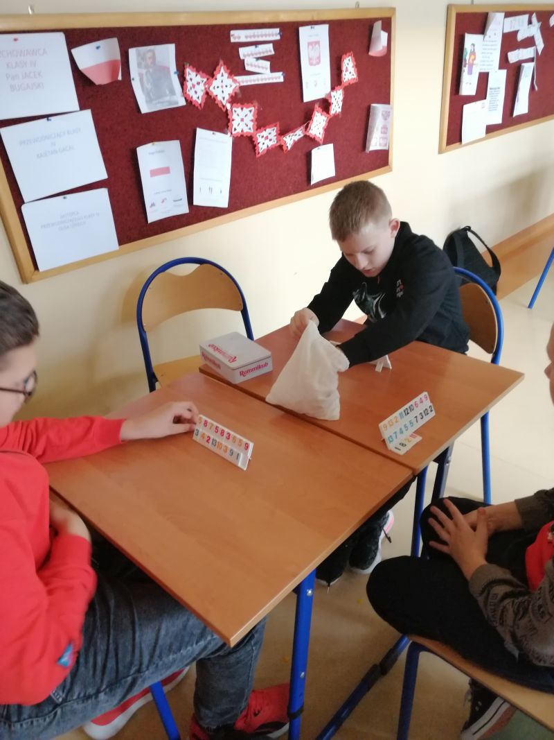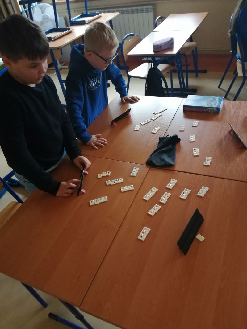 Do Szkolnego Koła Rummikub należą chętni uczniowie z klasy III, IV i VI. Zajęcia odbywają się regularnie, co dwa tygodnie w czwartki. Podczas spotkań członkowie koła poznali zasady gry, tworzą i doskonalą własne strategie rozwijając zdolności logicznego myślenia i umiejętności matematyczne, a przy tym miło spędzając czas z rówieśnikami. W związku z tym, że w zajęciach chce uczestniczyć coraz więcej uczniów, pragniemy bardzo serdecznie podziękować Radzie Rodziców za współpracę i zakup 4 kompletów gier, które pomogą w realizacji programu. Nowe zestawy umożliwią uczniom dalszy rozwój i trening sprawności matematycznych.