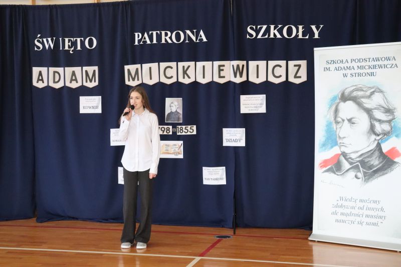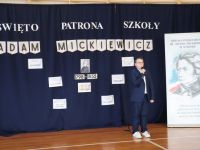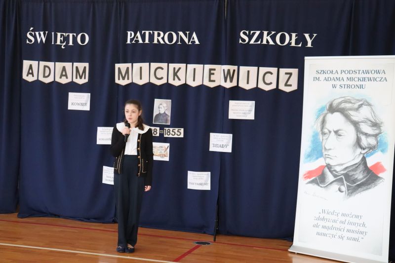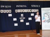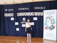 16 grudnia, jak co roku obchodziliśmy kolejną rocznicę urodzin Patrona Szkoły- Adama Mickiewicza. Z tej okazji odbyła się akademia, w czasie której uczniowie przypomnieli najważniejsze fakty z życia i twórczości Naszego Wieszcza Narodowego. Tegoroczna akademia była połączona z Konkursem Recytatorskim Poezji Mickiewicza, w czasie którego uczniowie z klas IV- VIII zaprezentowali wybrane utwory poety. Następnie komisja konkursowa wybrała trzy najlepsze recytacje, a oto wyniki: