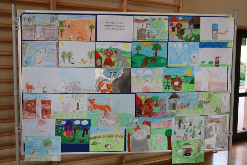 Uczniowie klas I-IV oraz dzieci z oddziału przedszkolnego wzięły udział w konkursie plastycznym na najlepszą ilustrację do wybranego utworu Adma Mickiewicza, oto wyniki: