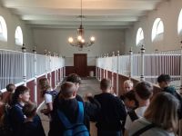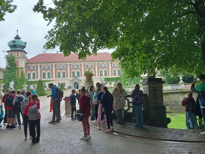 Na początku zwiedzili zamek w Łańcucie - jedną z najpiękniejszych rezydencji arystokratycznych w Polsce. Wędrując po zamku, uczniowie poszerzyli swoją wiedzę na temat życia arystokracji, właścicieli pałacu oraz zainteresowań magnackich rodów Lubomirskich i Potockich. Młodzież zachwyciły pełne przepychu i bogactwa wnętrza zamkowe, piękne posadzki, kryształowe żyrandole oraz antyczne posągi. Wielu wrażeń estetycznych dostarczył zwiedzającym spacer po parku urządzonym w stylu angielskim oraz wizyta w stajni i wozowni, gdzie zobaczyli imponującą kolekcję pojazdów konnych pozostałych po rodzinie Potockich. W Hali Zaprzęgowej uczniowie podziwiali trofea myśliwskie- zwierzęta przywiezione przez ostatniego właściciela zamku z afrykańskiego safari.
