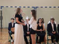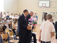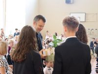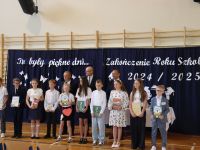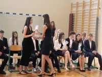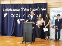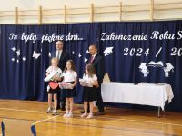 Pan Dyrektor wręczył nagrody i wyróżnienia dla uczniów za wzorową postawę, wysokie wyniki w nauce i osiągnięcia w konkursach przedmiotowych oraz zawodach sportowych.