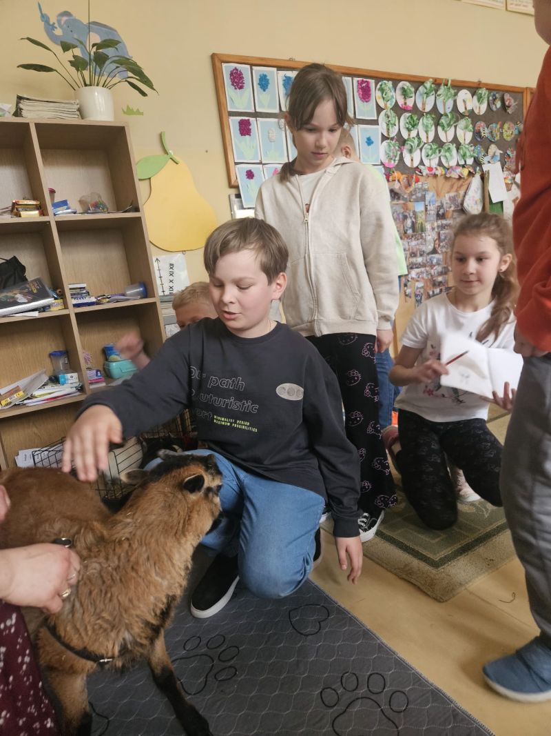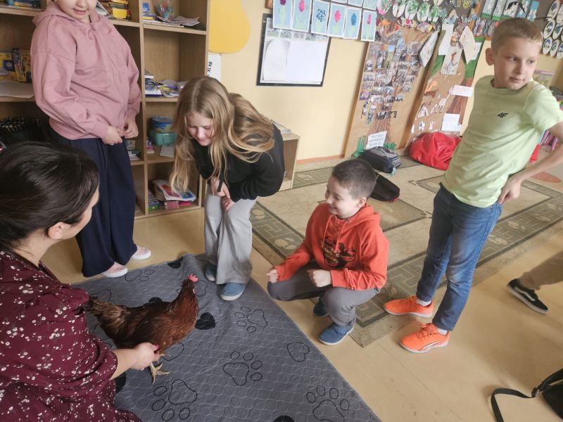 W miniony poniedziałek naszą szkołę odwiedziła Edukatorka przyrodnicza Pani Agata Kwit wraz z Kurką wędrowniczką i przyjaciółmi. W czasie warsztatów dzieci z oddziału przedszkolnego oraz klas I-III miały przyjemność doświadczyć kontaktu z żywymi zwierzętami oraz dowiedzieć się ciekawych informacji o ich życiu. Wspólnie z KURKĄ WĘDROWNICZKĄ I PRZYJACIÓŁMI dzieci poszerzały swoją wiedzę o życiu, zwyczajach i sposobie odżywiania się zwierząt gospodarskich. Zajęcia dostarczyły nie tylko cennych informacji, ale i mnóstwo dobrej zabawy!