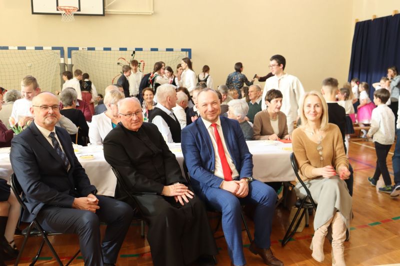 Jako pierwsza wystąpiła grupa uczniów uczęszczających na zajęcia taneczne, która powitała dziadków energicznym tańcem. Następnie młodzież z klas VII-VIII przedstawiła scenkę, w której zaprezentowała tradycyjne zwyczaje wsi lachowskiej. Po nich wystąpiły dzieci z oddziału przedszkolnego i uczniowie klas I-III. Nie zabrakło piosenek, tańców i ciepłych słów skierowanych do gości. W inscenizacji wnuczki i wnukowie obserwowali przez lornetki swoje babcie i swoich dziadków, by przekonać się czy są oni czarodziejami. Na zakończenie wszyscy uczniowie wspólnie zaśpiewali tradycyjne „Sto lat”, po czym szkolna kapela wykonała utwór „Wszystkiego dobrego”, a dzieci wręczyły własnoręcznie przygotowane upominki.
