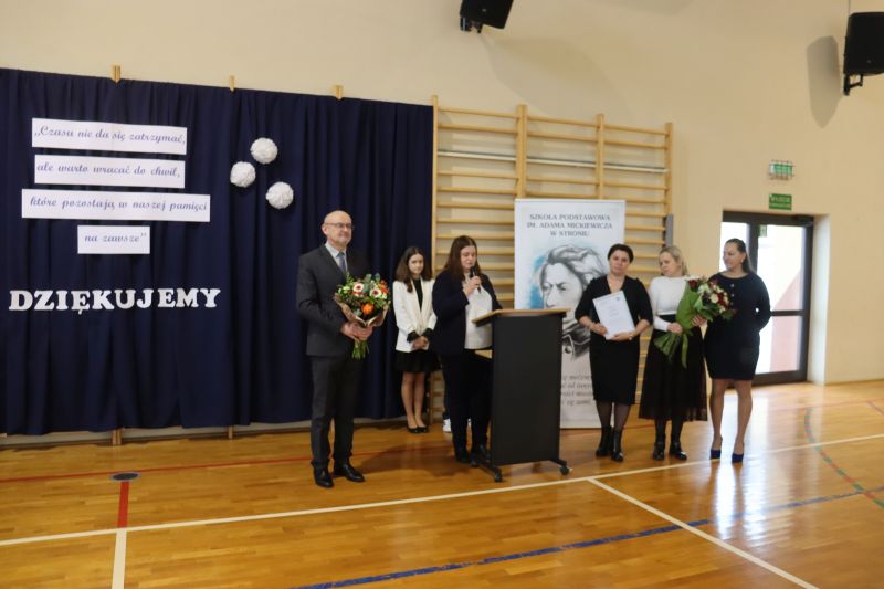 Podziękowano Dyrektorowi za dotychczasową pracę na rzecz szkoły i mieszkańców Stronia. Podczas pożegnania nie zabrakło również życzeń na nowy etap życia.