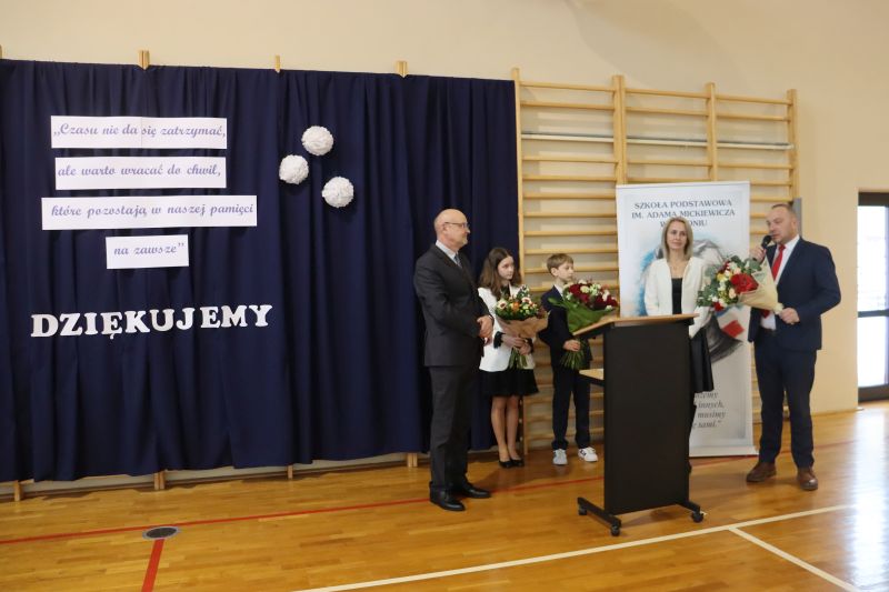 W spotkaniu uczestniczyli Wójt Gminy Pan Bogdan Łuczkowski, Dyrektor Zespołu Obsługi Edukacji Pani Joanna Juras, uczniowie, pracownicy Szkoły oraz grono pedagogiczne.