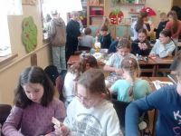 Podczas spotkania Pani Alicja zaprezentowała krok po kroku, jak własnoręcznie wykonać aniołki ze sznurków oraz świąteczne choinki z makramy. Uczniowie mieli okazję nie tylko obserwować pracę specjalistki, lecz także samodzielnie stworzyć swoje małe dzieła sztuki. Warsztaty stały się doskonałą okazją, by rozwijać kreatywność, cierpliwość oraz zdolności manualne, a także poznać jedną z możliwych ścieżek zawodowych związanych z rękodziełem.
