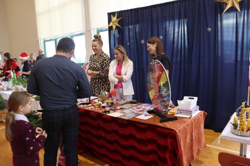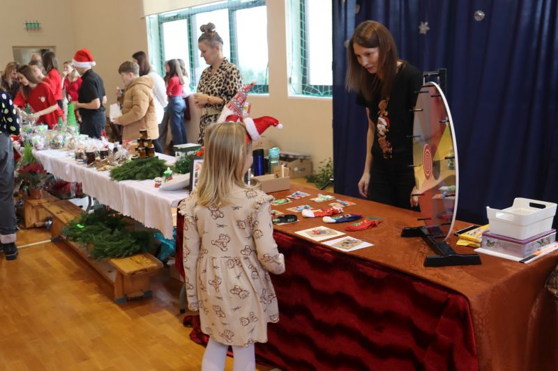 Podczas kiermaszu można było podziwiać i nabyć świąteczne ozdoby, skosztować domowych wypieków oraz wziąć udział w loterii fantowej. Nie zabrakło również muzyki i radosnej atmosfery, która sprzyjała wspólnym rozmowom i integracji. Całość dopełniała serdeczność i otwartość uczestników, dzięki którym wydarzenie miało wyjątkowy, rodzinny charakter.