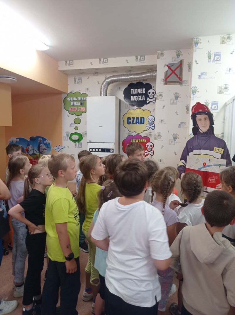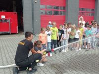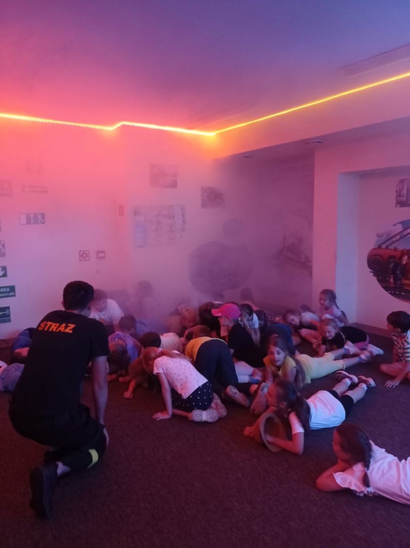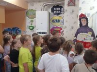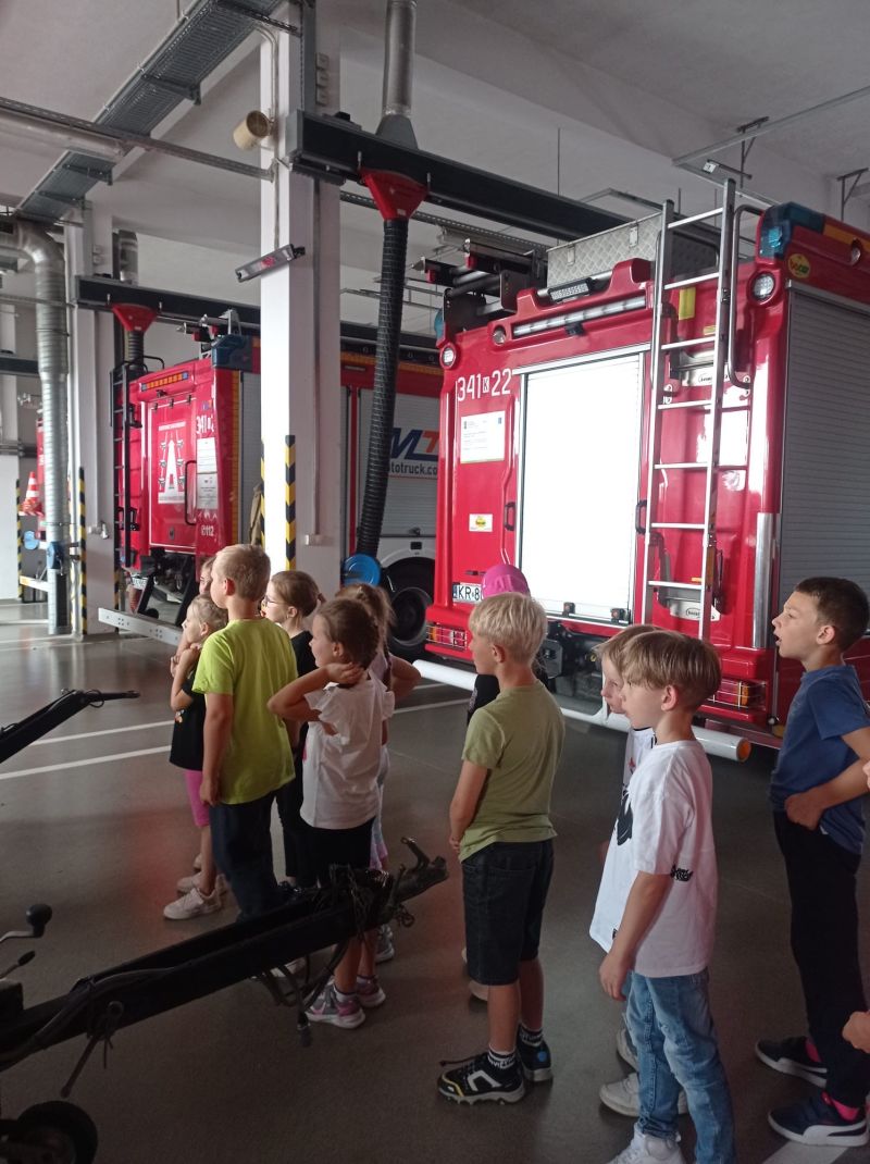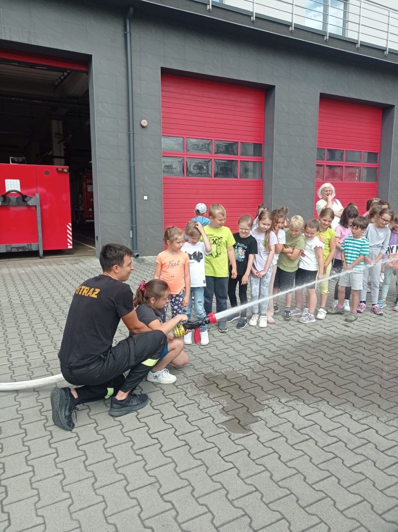 Dzięki życzliwości pracujących tam strażaków, uczniowie mogli obejrzeć z bliska wozy strażackie wraz z całym wyposażeniem, sprzęt gaśniczy i ratunkowy. Dużą atrakcją była możliwość samodzielnego użycia węża gaśniczego.