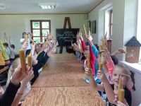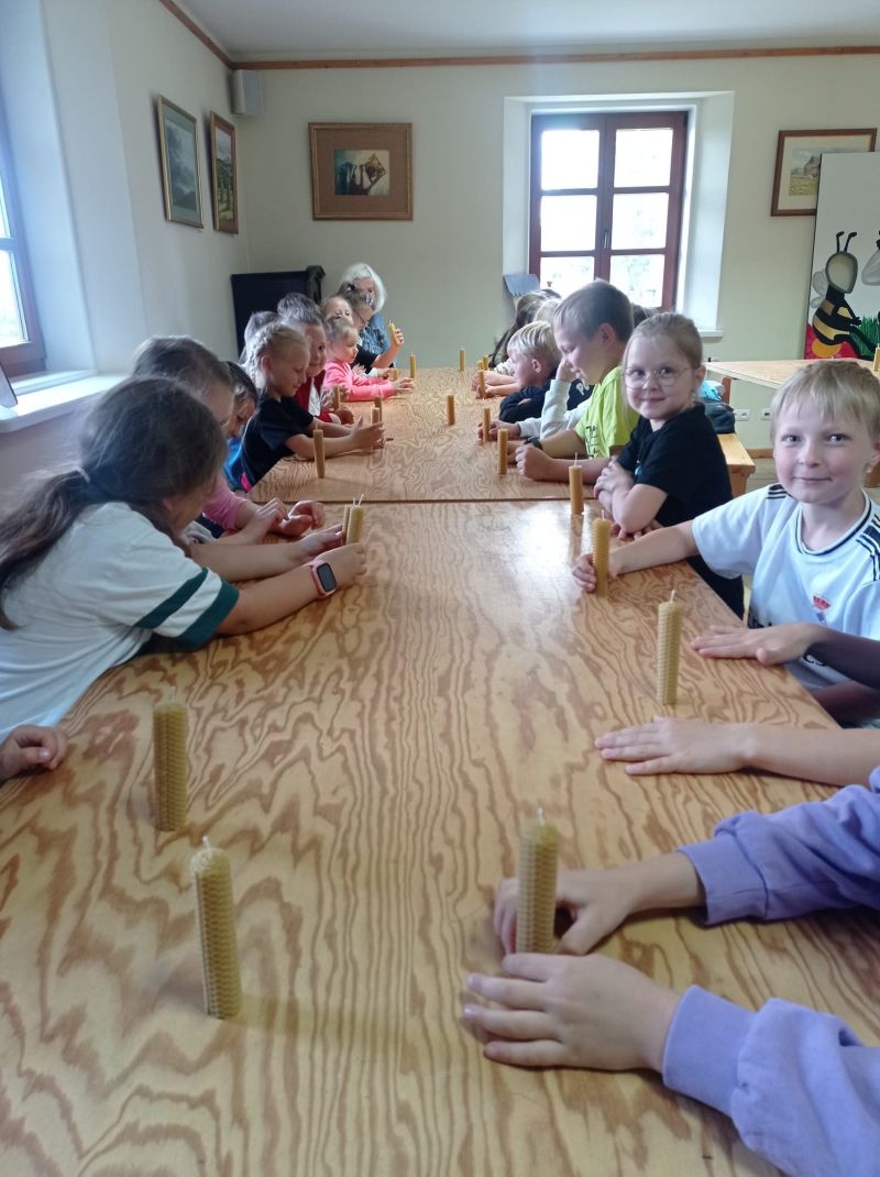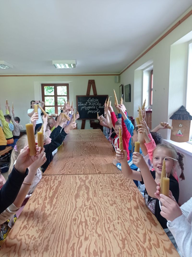 Na początek dzieci uczestniczyły w warsztatach “Wielka przygoda z małą pszczołą”, podczas których wzbogaciły Swoją wiedzę o życiu i roli pszczół w przyrodzie. Dużo radości sprawiło uczniom własnoręczne wykonanie świec woskowych oraz degustacja miodów na pierniczkach.
