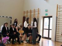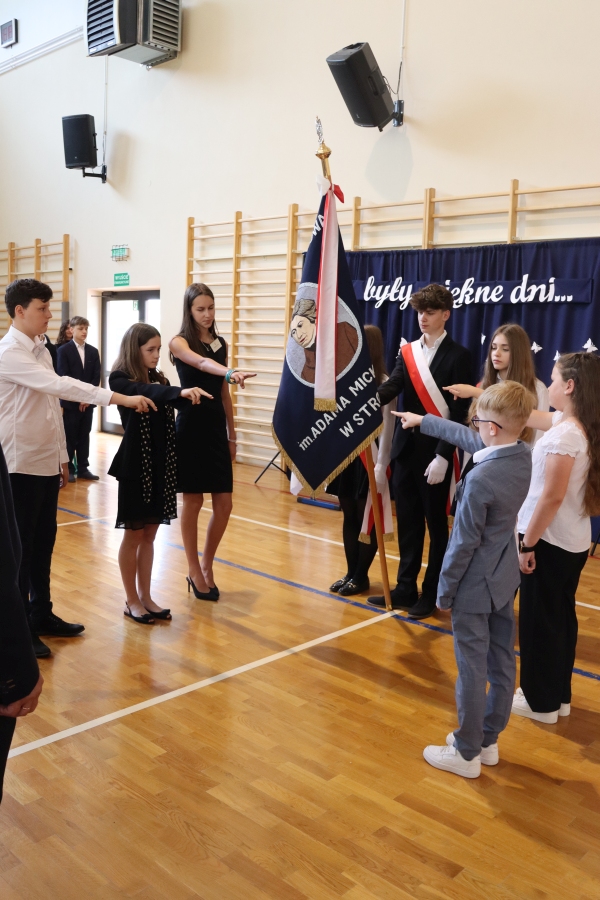 W dalszej części uroczystości klasa VII pożegnała Uczniów klasy VIII, a na zakończenie części artystycznej Absolwenci złożyli podziękowania Nauczycielom, Pracownikom obsługi oraz Rodzicom.